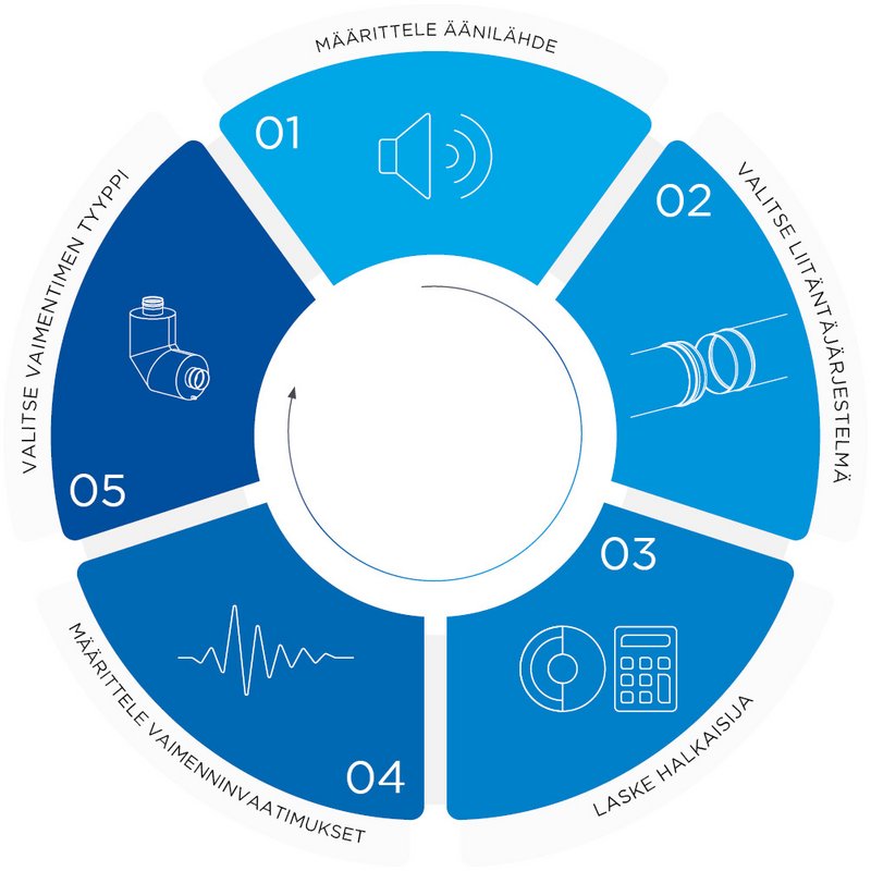 | Taajuusalue | Äänenvaimentimen tyyppi | Äänenvaimenninsarja | ||