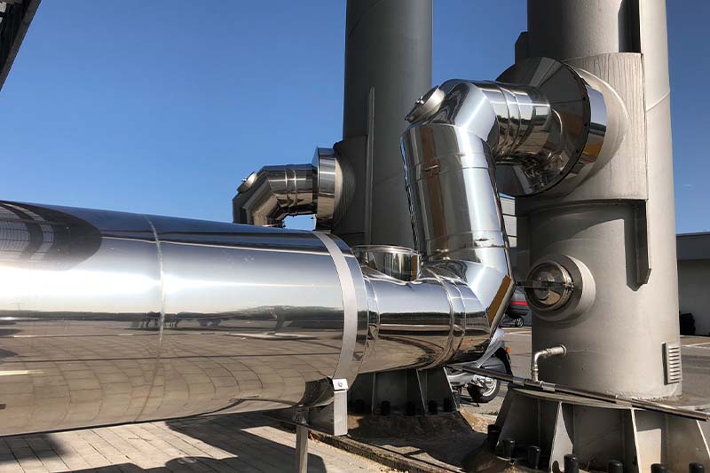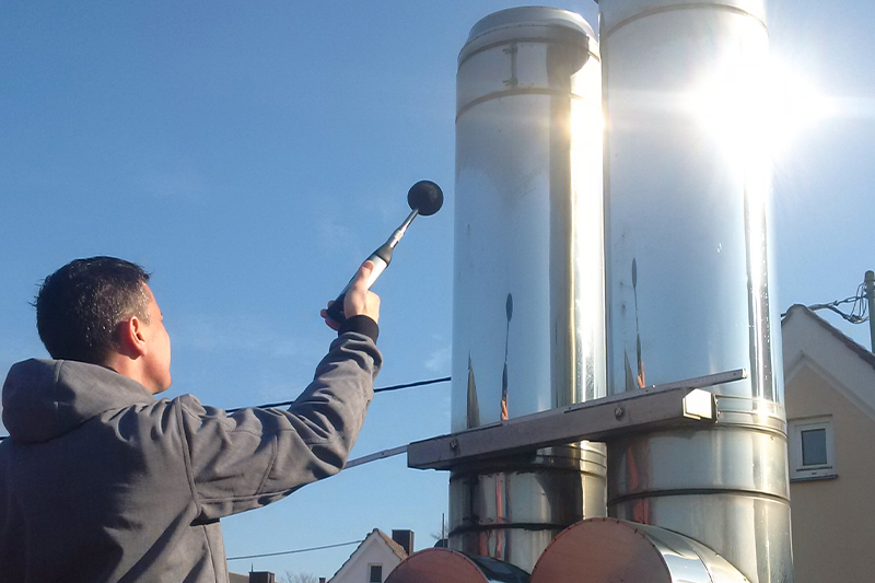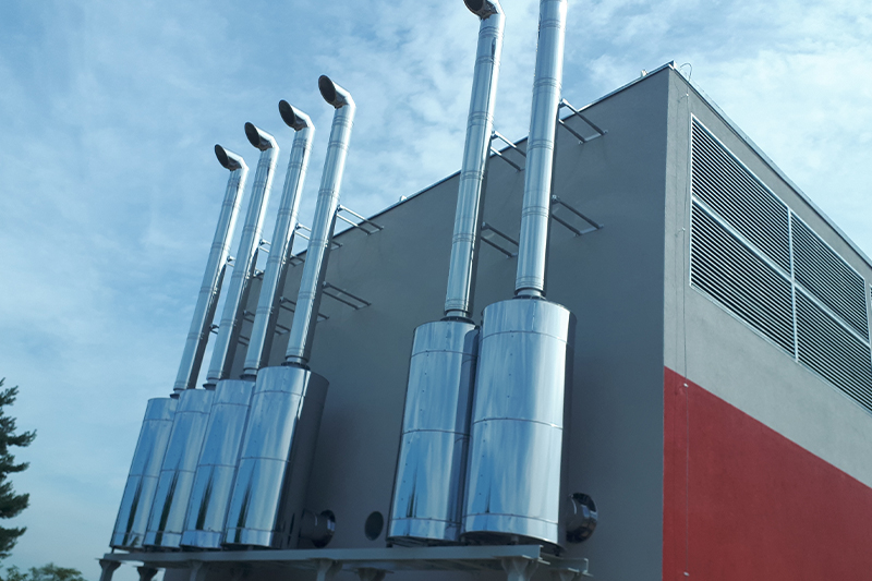 Palamisprosessin aikana syntyvät savukaasut vapautuvat savukaasujärjestelmän kautta ympäristöön. Liekkiäänet kattilahuoneesta sekä lauhdutuskattiloihin asennetun puhaltimen "surina" voivat siirtyä eteenpäin. Yleensä nämä ovat keski- ja korkeataajuisia ääniä, joita voidaan vähentää absorptioäänenvaimentimen avulla. Varsinkin uudemmissa vetopolttimissa saattaa olla tarpeen käyttää yhdistettyä äänenvaimenninta tai puhdasta resonanssivaimenninta laajempaa vaimennusta varten.