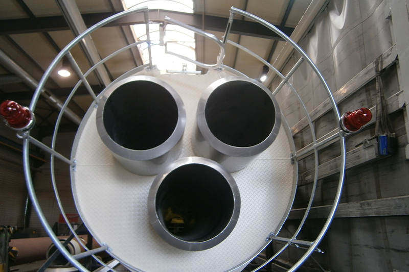 Vapaasti seisova teräspiippu rakenteellisesti tukevalla ulkoputkella ja useilla (X) sisäputkilla